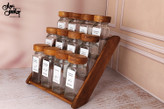 پک استند چوبی ۱۲ تایی +۱۲ عدد شیشه مک کارتی سایز ۲ با درب چوبی +۱۲ عدد لیبل