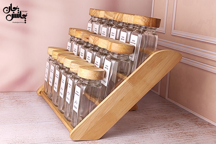 این پک کامل و کاربردی، بهترین انتخاب برای نظمدهی حرفهای ادویهها در آشپزخانه است. استند چوبی ۱۸ تایی این مجموعه فضای کافی برای قرار دادن ۱۸ شیشه ادویه را فراهم میکند و در دو رنگ تیره و روشن موجود است تا با هر نوع دکور آشپزخانه هماهنگ شود.