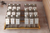 پک استند چوبی 18 تایی + 18 عدد شیشه مک کارتی سایز ۲ با درب فلزی +18 عدد لیبل ( پک اقتصادی)